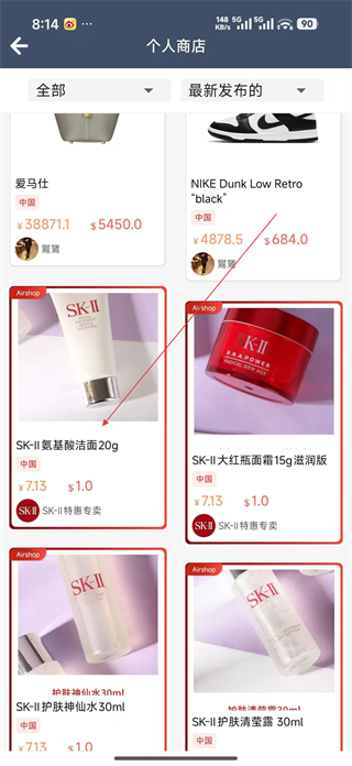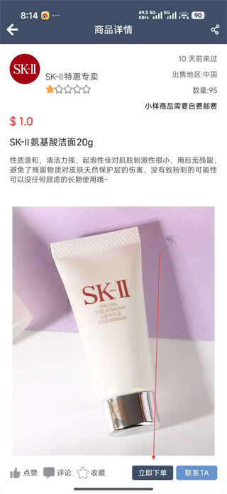 2、在商品列表頁面選擇目標商品比如SKII氨基酸潔面,點擊進入該商品的詳情頁面,查看價格、介紹等信息。