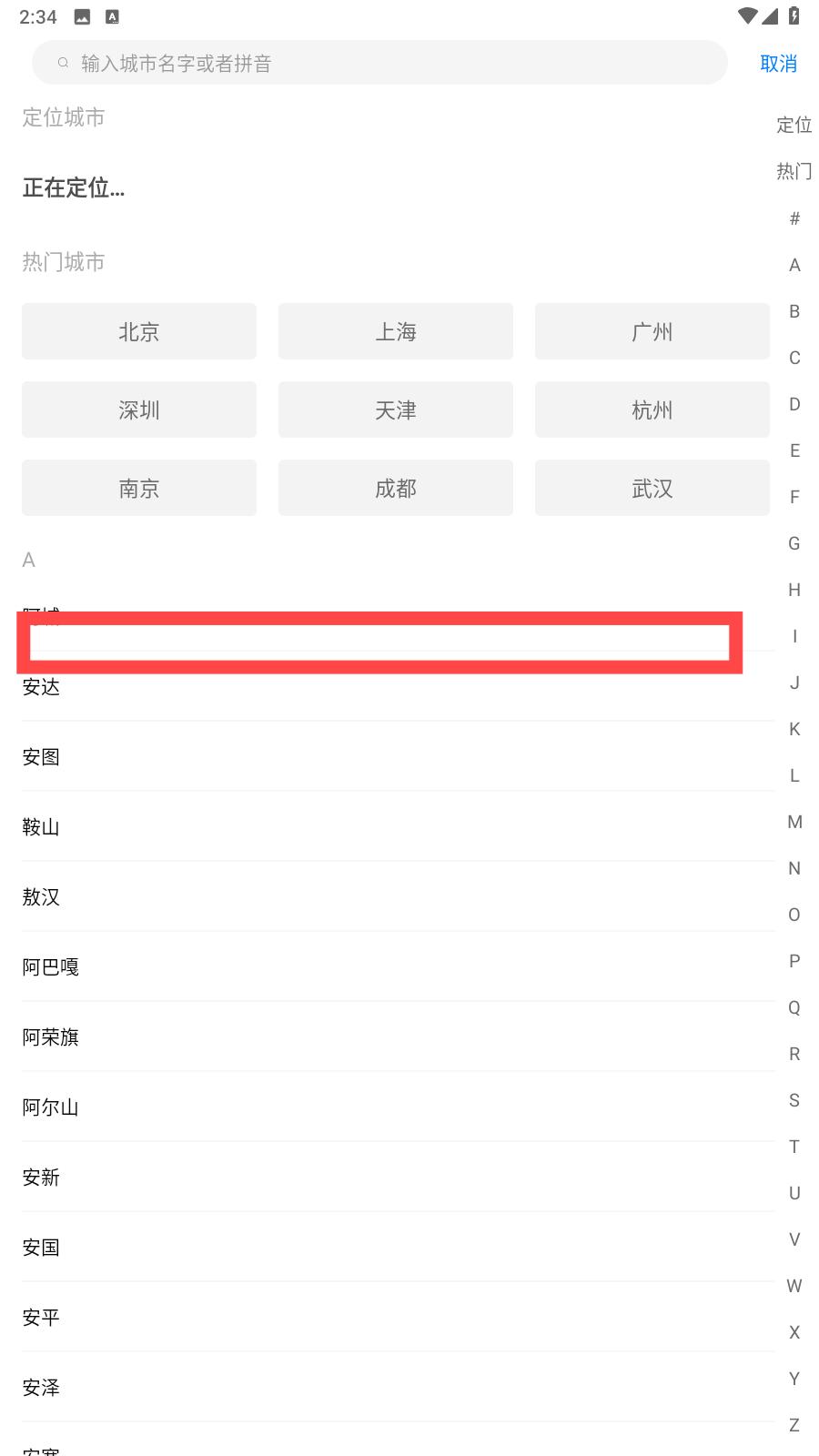 2、在這個界面,小編推薦您選擇自己所在的地區,因為這樣可以使您查看天氣更加方便,比如選擇安達。