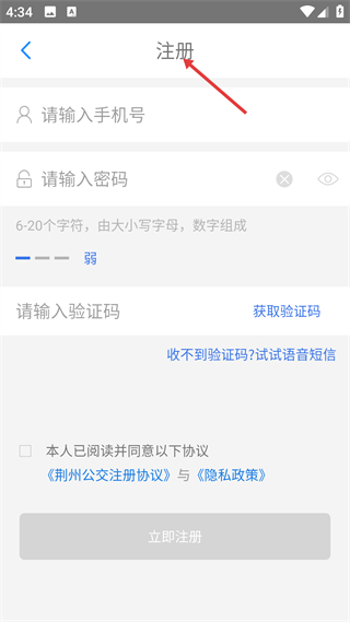 2、進入注冊界面需輸入手機號,設置6-20位含大小寫字母和數字的密碼,獲取并填寫驗證碼,勾選相關協議后可點擊立即注冊。