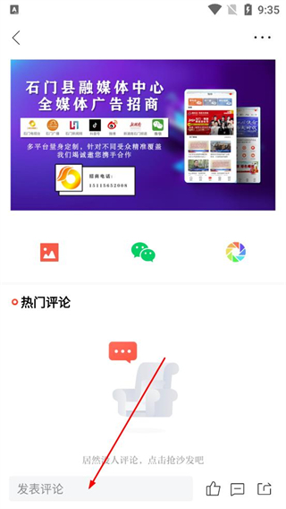 4、在詳情頁底部找到發表評論輸入框,點擊輸入框準備填寫內容,之后可輸入評論內容并提交,參與該文章的互動。
