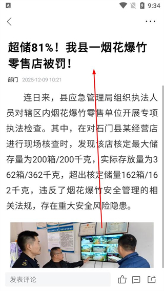 3、在文章詳情頁閱讀應急管理局執法檢查及處罰的內容,了解事件的具體情況及違規細節。