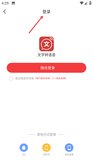 1、登錄界面,支持微信、QQ、手機號等方式登錄,需勾選同意服務條款及隱私政策,才能進入功能頁面。