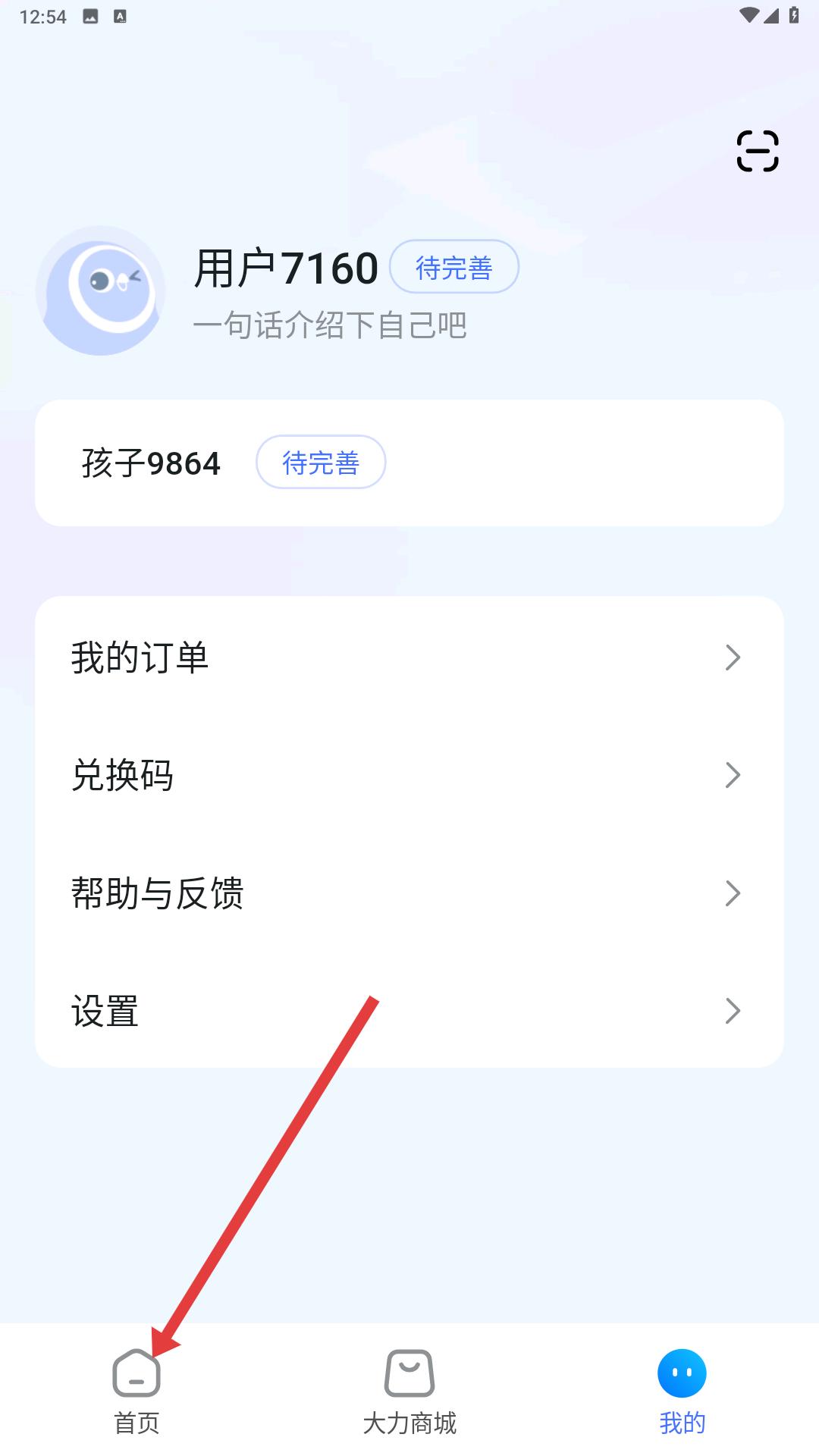 1、打開大力相關應用,點擊底部首頁選項,然后進入首頁頁面,準備綁定設備。