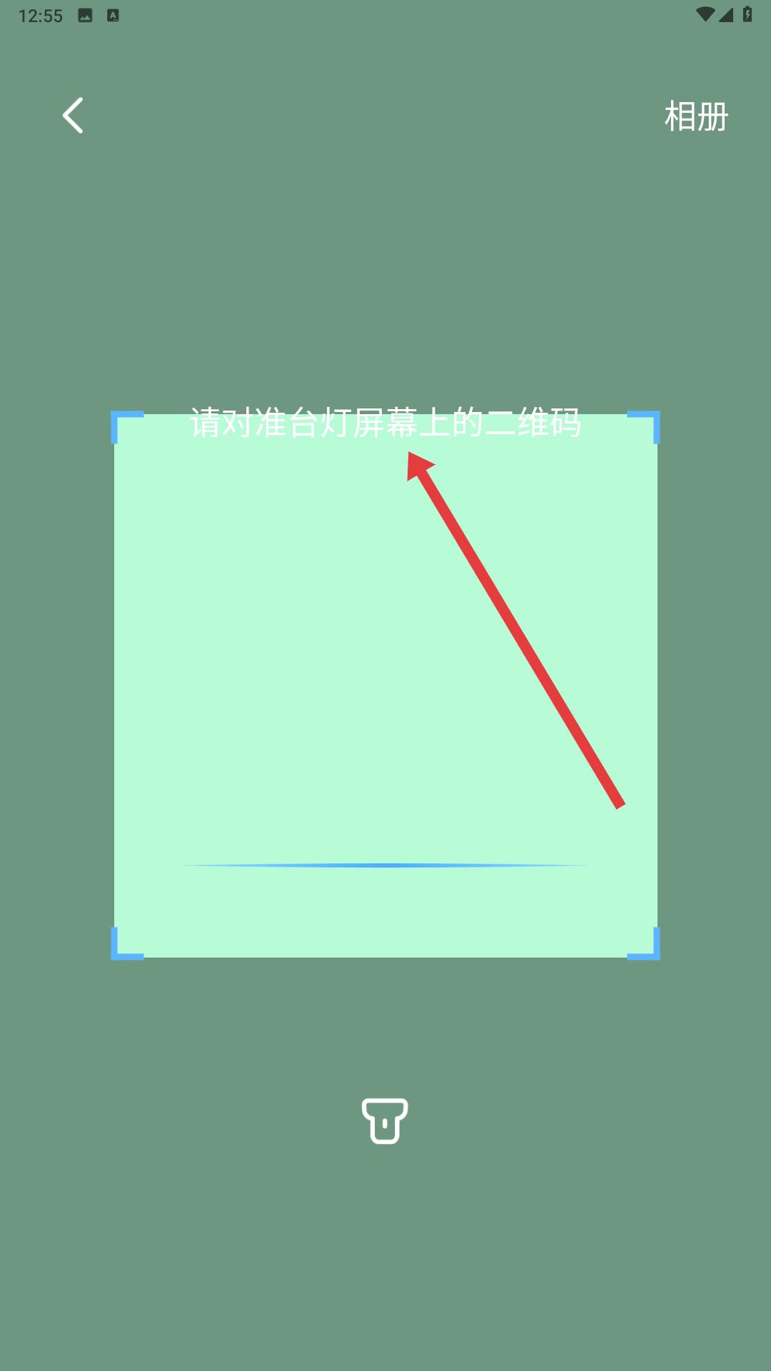 3、掃碼界面,對準臺燈屏幕上的二維碼進行掃描,完成設備綁定綁定后支持管理設備。
