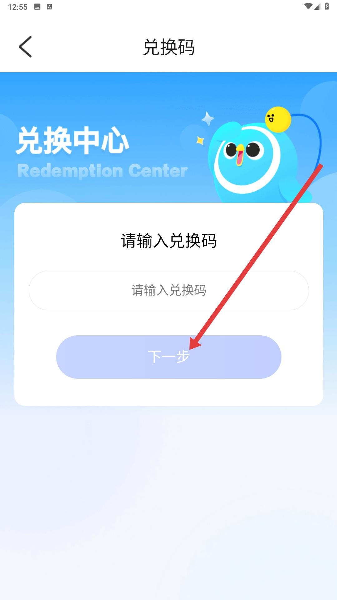 4、若要進行兌換碼相關操作,進入兌換碼頁面的兌換中心,請輸入兌換碼輸入框中輸入兌換碼,然后點擊下一步,即可進行后續兌換流程。