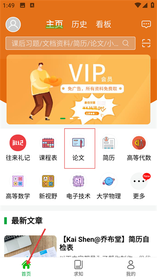 1、主界面設首頁等導航欄,提供論文等功能入口,覆蓋課后習題等資源類型,底部有首頁等導航,適配各類學習資料查找需求。