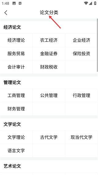 2、論文分類界面按學科劃分類別,含經濟等大類,每類下細分具體方向,便于精準查找對應領域的論文資源,提升檢索效率。