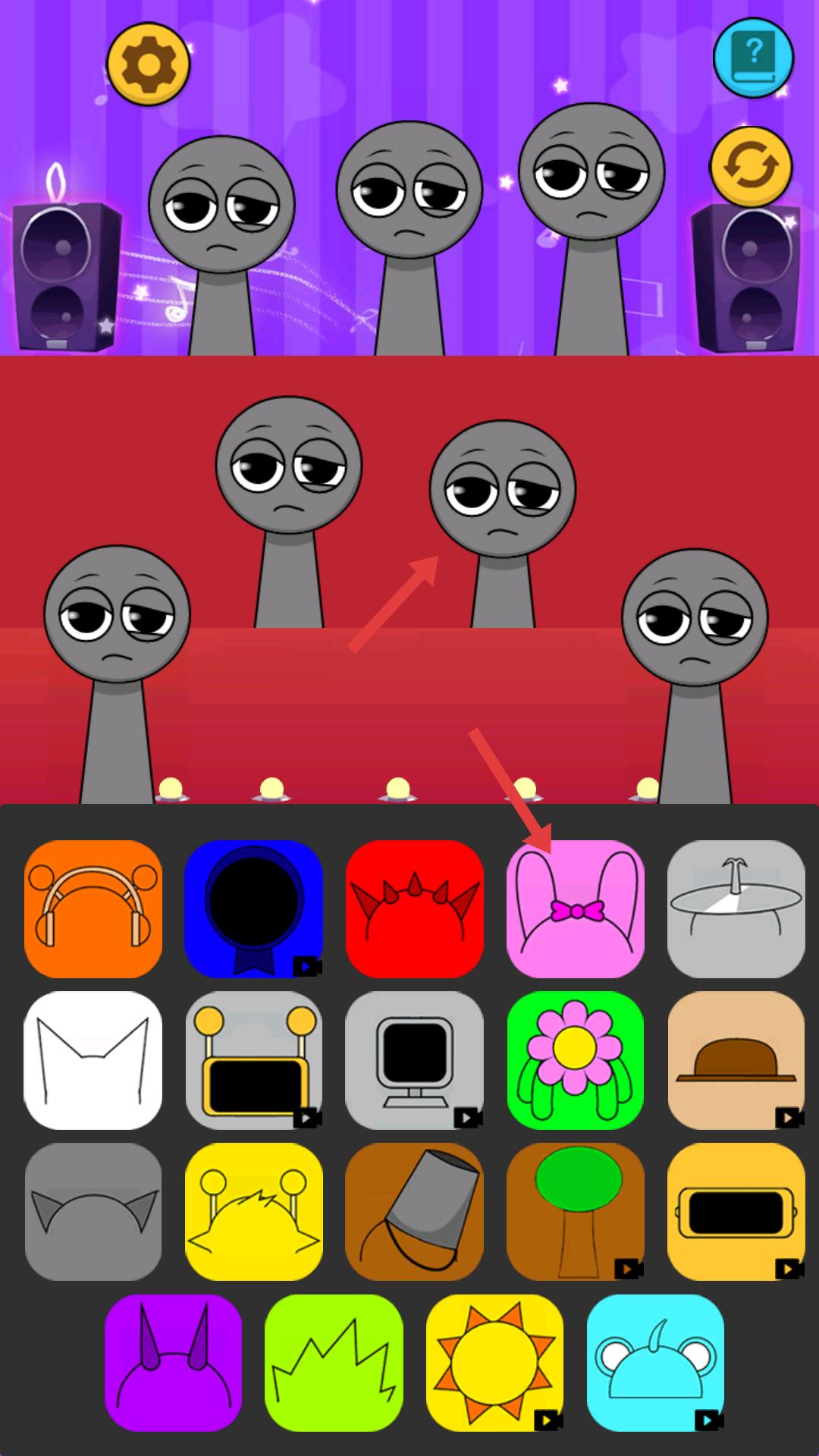 4、不斷挑選合適的裝扮道具,為剩余角色進行裝扮,也可以暫停音樂,體驗游戲的樂趣。