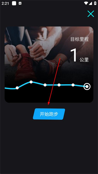 3、在跑步設置界面查看目標里程,點擊開始跑步按鈕,啟動跑步記錄功能,記錄運動數據。