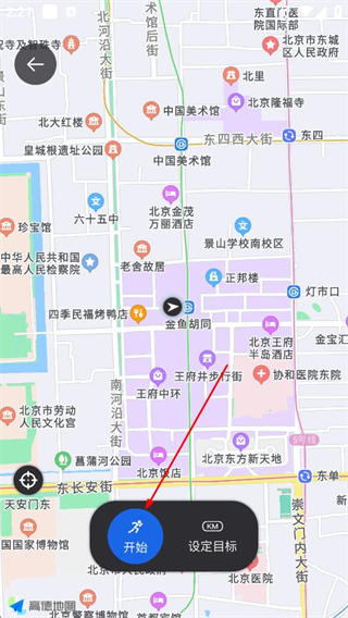 4、查看當前位置,可點擊開始按鈕記錄運動軌跡,也能點擊設定目標調整運動計劃。