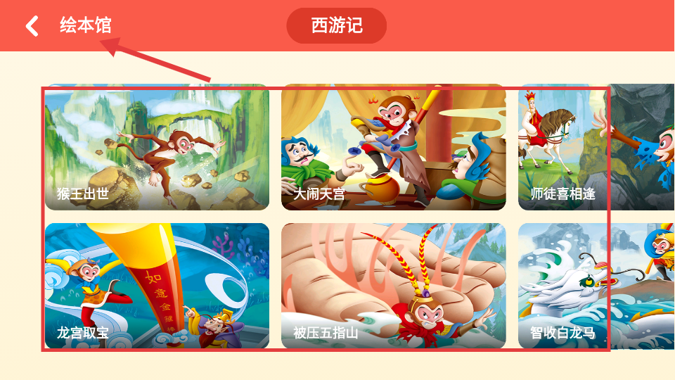 4、繪本館聚焦西游記呈現猴王出世、被壓五指山等經典情節,用生動畫面演繹名著故事,給予孩子精彩閱讀感受。