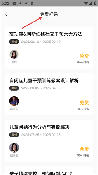 2、免費好課板塊有社交干預、自閉癥干預教案設計、兒童問題行為分析等免費課,適合家長教師學習特教知識。