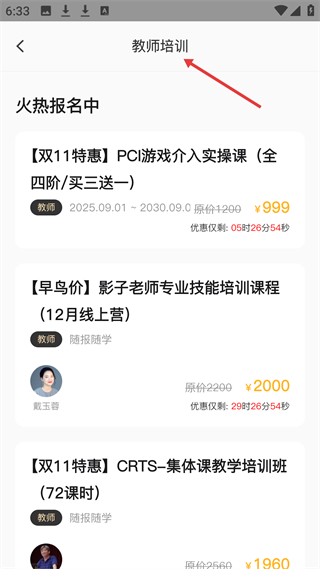 3、教師培訓板塊推PCI游戲介入課、影子老師技能課、CRTS集體課培訓班,有雙11特惠和早鳥價,助力教師提升特教技能。