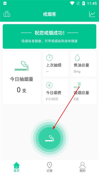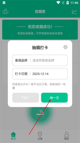 4、根據實際情況選擇不抽了或抽一支按鈕,完成本次抽煙行為的記錄操作。