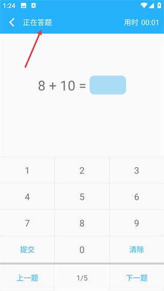 2、答題界面,展示計算題目,配備數字鍵盤輸入答案,支持題目切換,記錄答題用時,助力實時開展計算練習。
