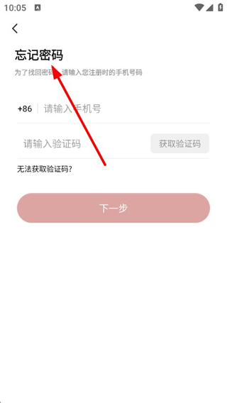 4、若忘記密碼,進入忘記密碼頁面,輸入注冊時的手機號獲取驗證碼,點擊下一步完成密碼重置流程。