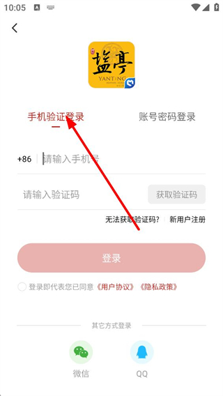 3、登錄頁面,可選擇手機驗證登錄,輸入手機號獲取驗證碼登錄,也可選擇賬號密碼登錄或微信、QQ等其他方式登錄。