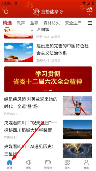 1、進入直播鹽亭APP首頁,可看到精選、政聲等多個欄目,還有各類新聞資訊,能瀏覽鹽亭本地及相關新聞內容。