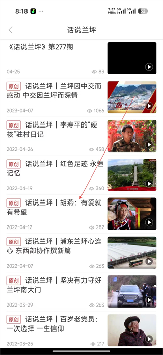 2、在視頻列表中選擇話說蘭坪胡燕有愛就有希望這一視頻,點擊該視頻,進入播放前的提示頁面。