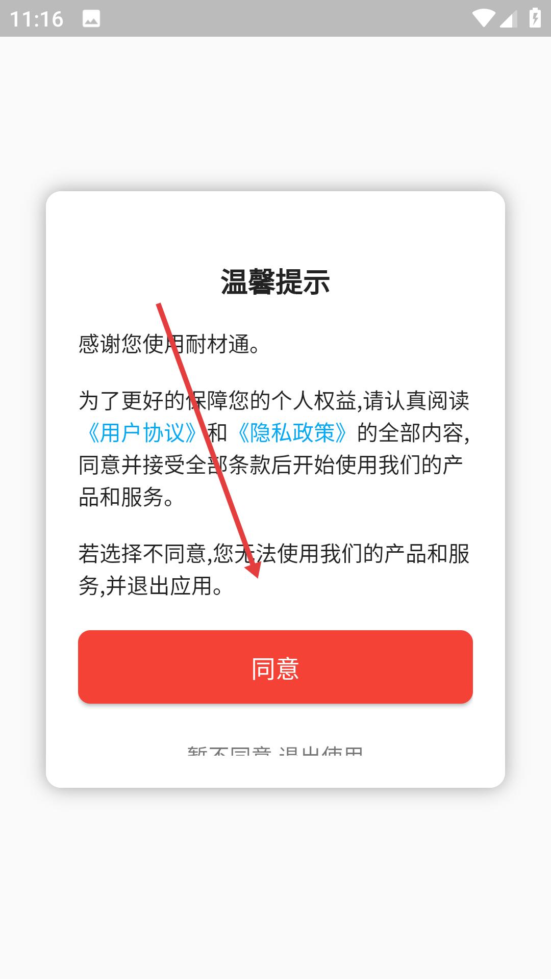 1、下載安裝完成后進入,需在用戶協議和隱私政策界面點擊同意,接受相關條款后才能進入應用。