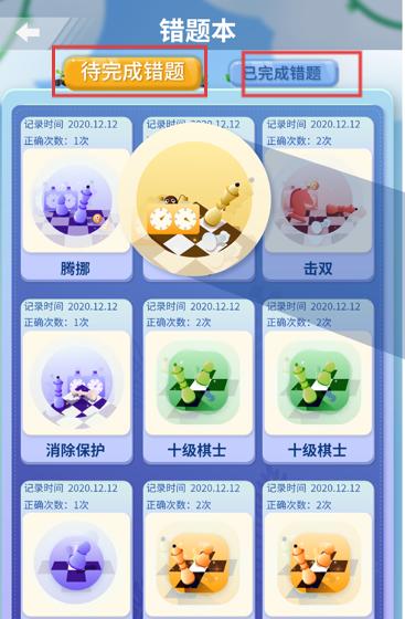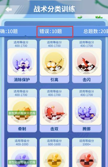 1、這是好棋中國app的戰術分類訓練界面,下方呈現多個訓練卡片,卡片上有對應圖案。