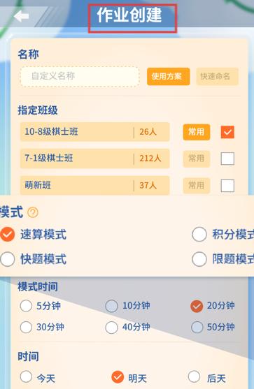 2、此為作業創建界面,頂部有作業創建標題,名稱欄可輸入自定義名稱。