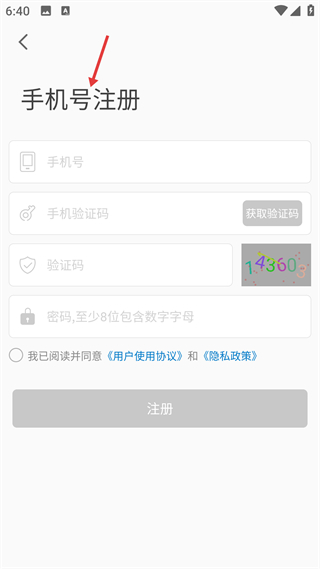 2、進入注冊頁,需填寫手機號獲取并輸驗證碼,完成圖形驗證后設密碼,勾選協議政策即可完成注冊。