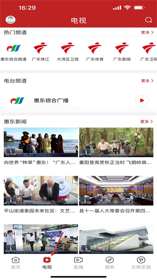 2、電視板塊,有熱門頻道如惠東綜合頻道、廣東珠江等,電臺頻道惠東綜合廣播可播放,還有惠東新聞視頻內容。