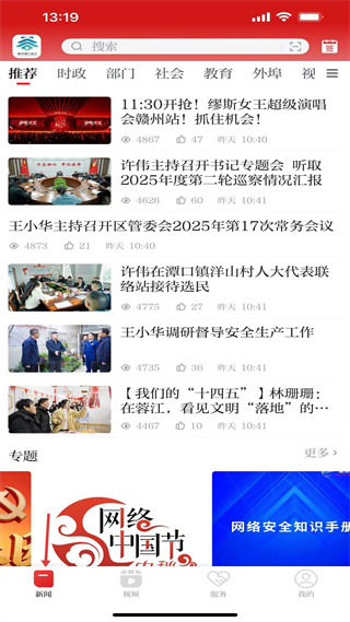 匯集中央、省、市、區主流媒體最新資訊,并鏈接“贛服通”,涵蓋政務服務、網上辦事、生活服務等與群眾生活息息相關的服務功能。