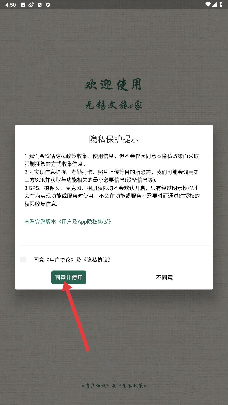 1、進入軟件之后,會跳出服務協議,需要認真閱讀軟件給出的建議后點擊同意并繼續下一步。