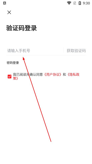 1、進入驗證碼登錄頁,勾選已閱讀并確認同意協議,在請輸入手機號欄填寫號碼,點擊獲取驗證碼,填入后完成登錄。