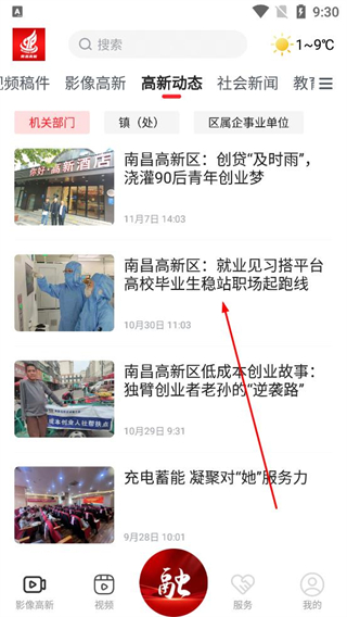 2、登錄后進入首頁選擇高新動態板塊,瀏覽資訊列表,找到南昌高新區就業見習相關文章,點擊該文章進入詳情頁。