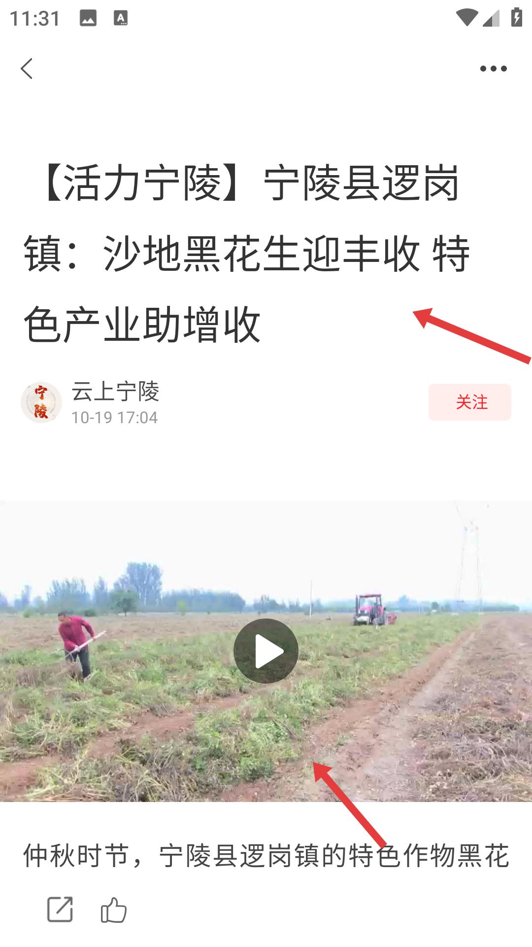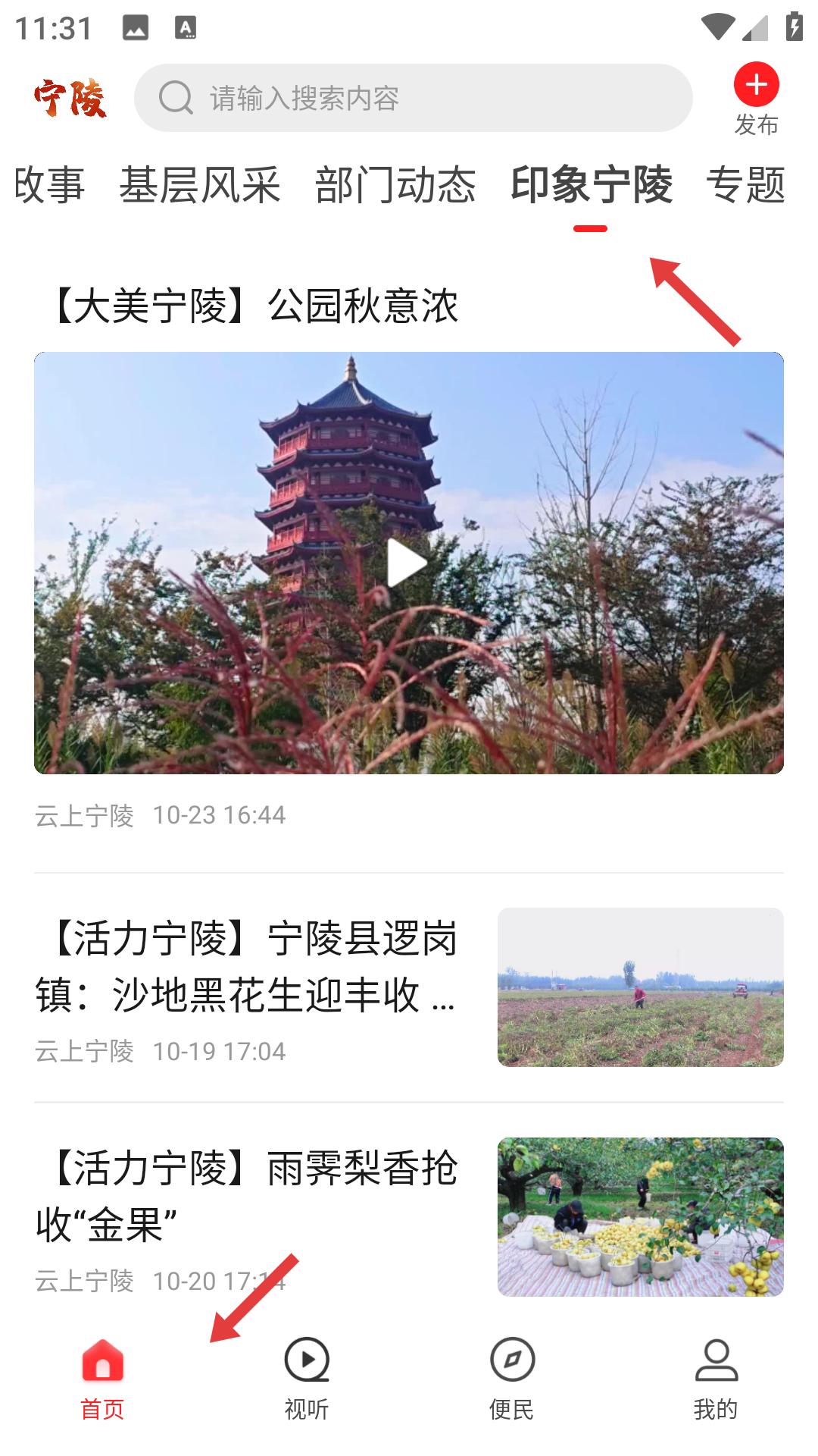 1、在首頁可選擇印象寧陵等板塊,瀏覽寧陵的相關資訊,找到感興趣的內容,點擊即可進入詳情頁面。