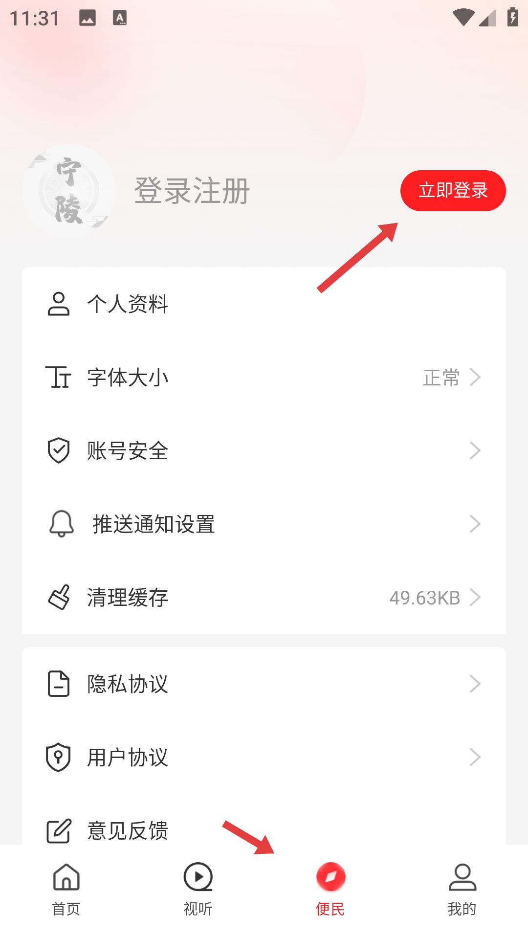 3、在便民頁面,可進行登錄注冊操作,還能設置字體大小,賬號安全等,管理個人賬號信息。
