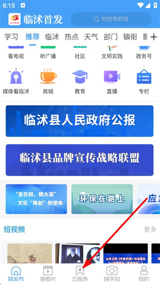 1、打開臨沭首發的主界面,找到底部功能欄中的云服務按鈕,點擊這個按鈕,進入對應的服務頁面,為后續操作做準備。