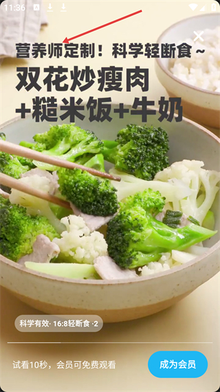 1、該板塊呈現營養師定制的科學輕斷食餐,如雙花炒瘦肉搭配糙米飯和牛奶,助力用戶科學減脂,餐食搭配營養均衡。