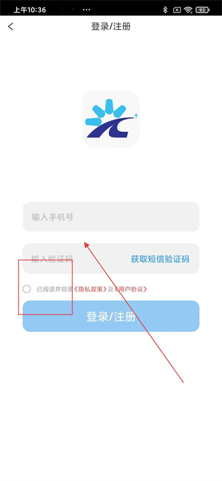 1、打開光明融媒軟件,進入登錄注冊頁面,勾選隱私政策協議,輸入手機號并獲取填寫驗證碼,點擊登錄注冊按鈕完成賬號登錄。