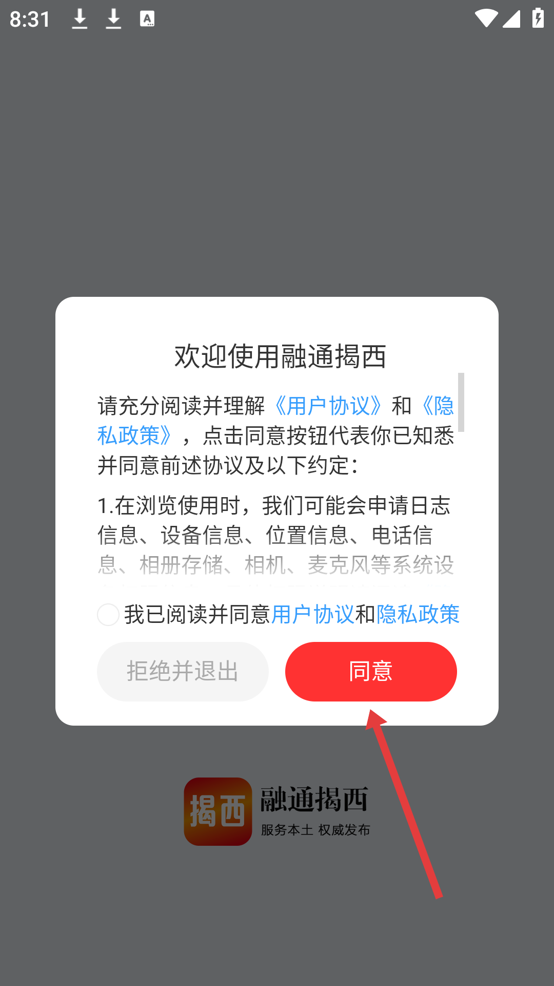 1、首次打開APP會彈出用戶協議及隱私政策界面,需仔細閱讀后點擊同意才能繼續使用APP,這一步是為了確保用戶了解并同意平臺使用個人信息的規則。