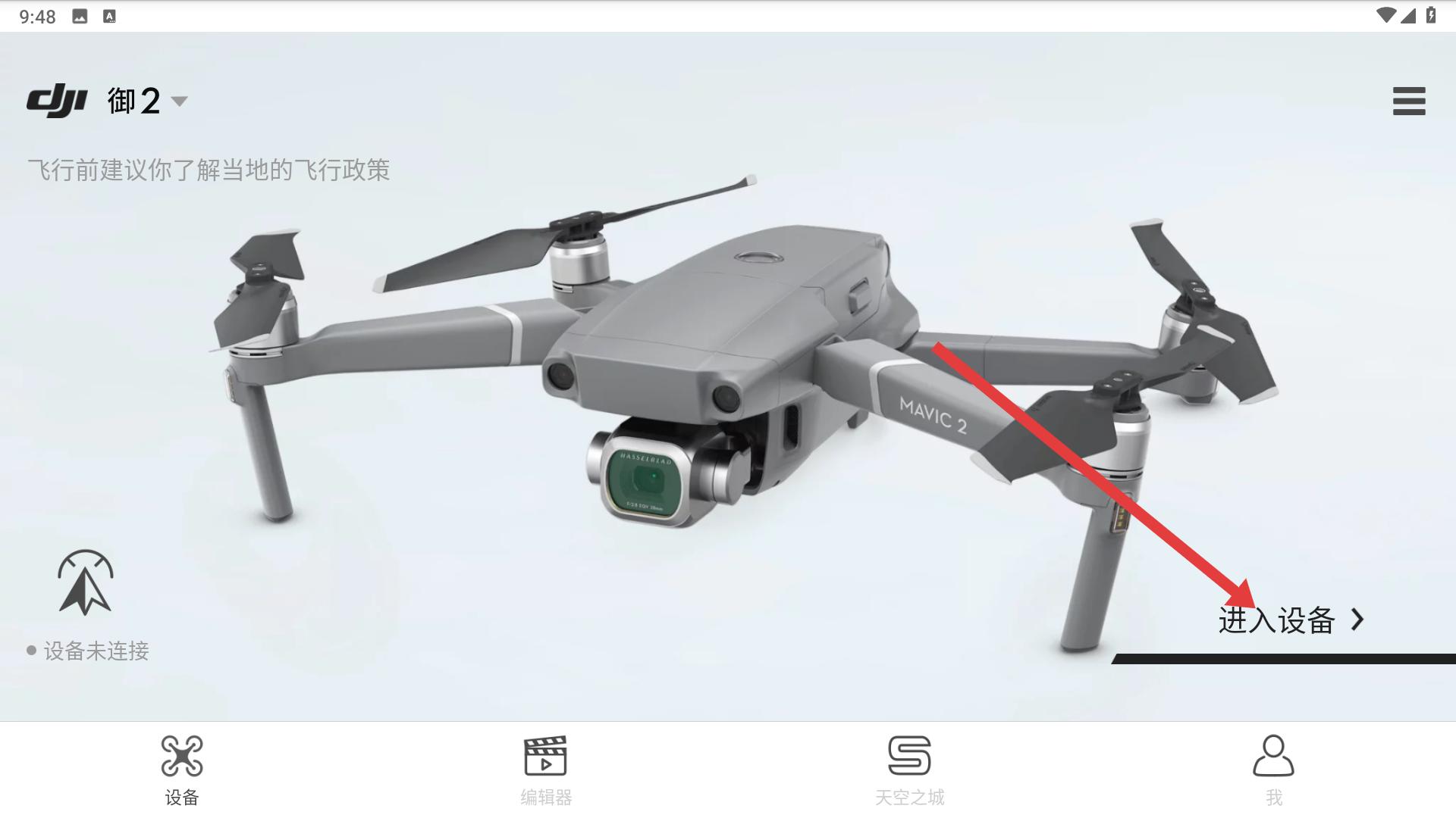1、進入APP后,點擊進入設備可進入設備連接流程,開始連接無人機設備。