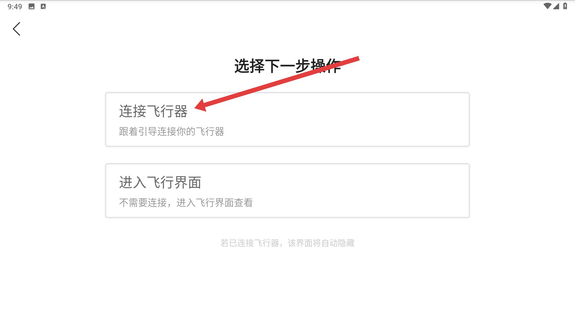 2、選擇下一步操作界面,點擊連接飛行器,可跟著引導連接無人機飛行器。
