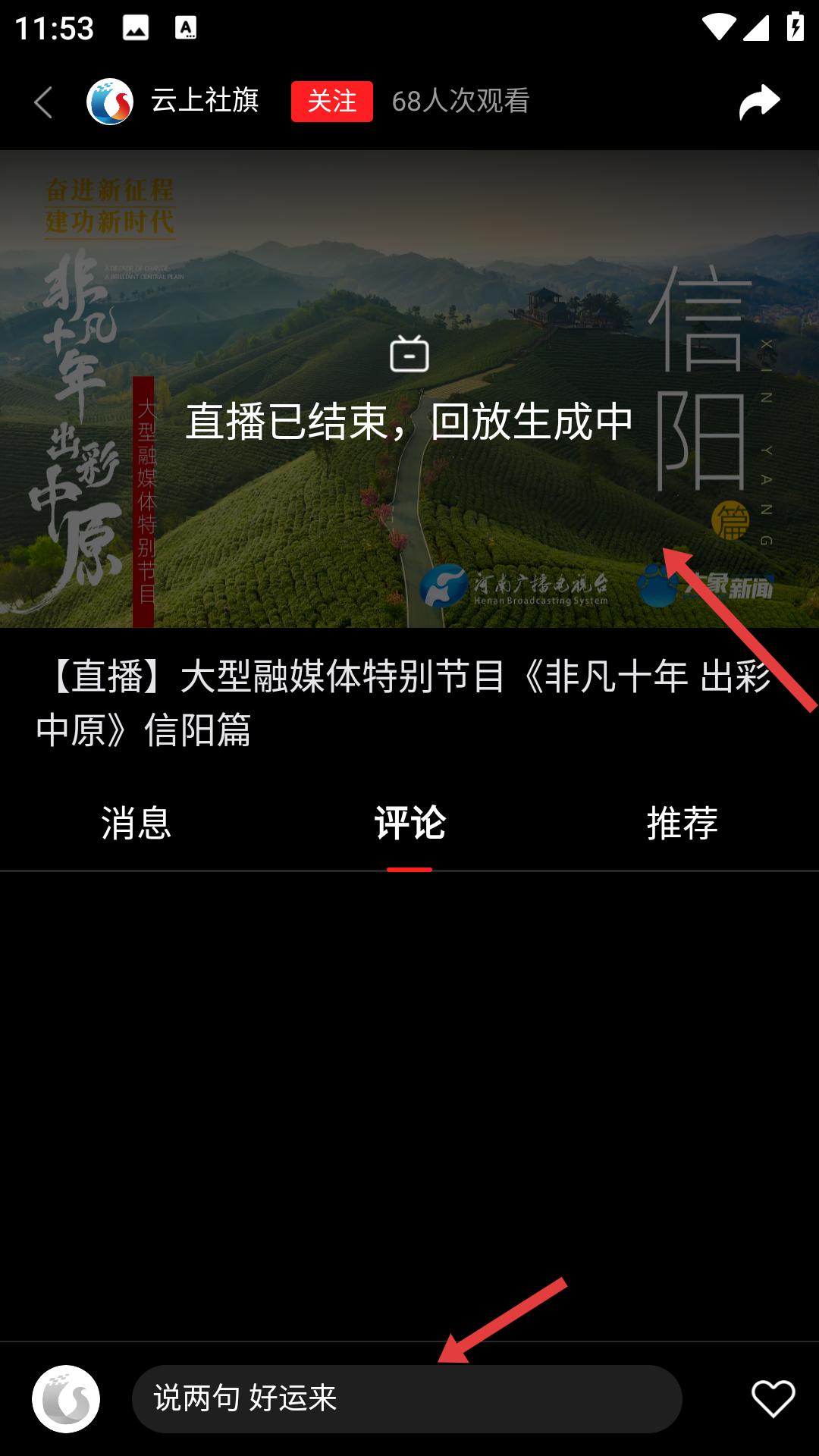 3、進入直播回放播放頁面,可查看直播內容,切換評論板塊,參與評論互動。