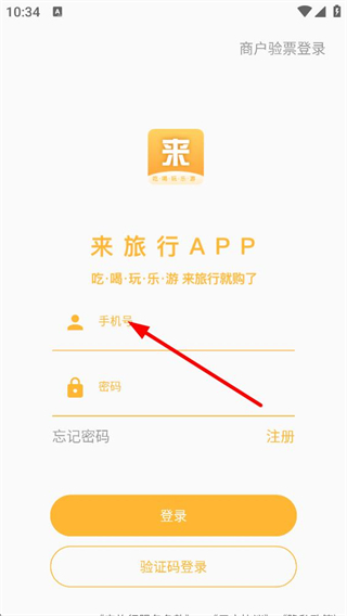 1、打開來旅行APP,進入登錄界面,可選擇輸入手機號和密碼登錄,也可點擊驗證碼登錄,還可點擊忘記密碼或注冊進行相關操作。