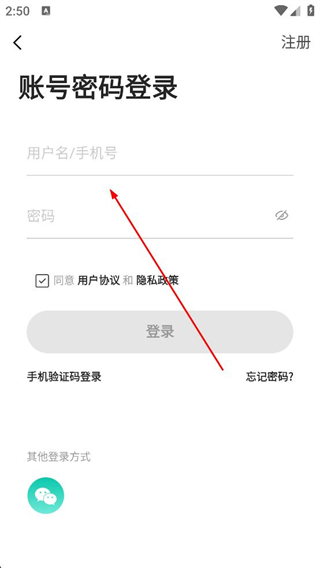 2、選擇賬號密碼登錄方式,填寫用戶名或手機號及密碼,勾選相關協議后嘗試登錄賬號。