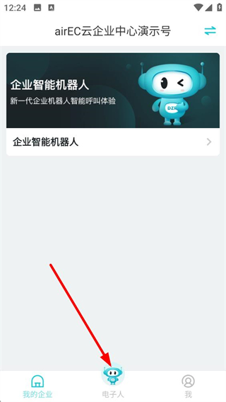 1、進入airEC云企業中心首頁,可查看企業智能機器人相關服務,底部有我的企業電子人等入口,點擊電子人選項,即可進入電子人功能頁面。