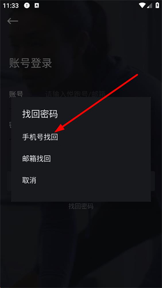 3、點擊找回密碼后,會彈出找回密碼的選項彈窗,可選擇手機號找回或郵箱找回的方式,來重置賬號密碼,便于重新登錄賬號。