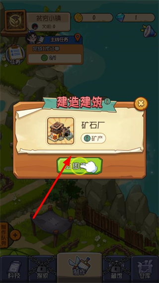 1、小鎮可建造建筑,如礦石廠,點擊立即建造開啟建筑建設,為小鎮發展提供礦產資源。
