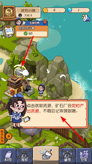 2、礦石廠建成后會定時產出資源,需點擊收取資源,及時領取資源助力小鎮建設。