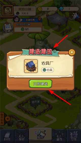 3、還可建造農具廠,點擊立即建造開展建設,為小鎮生產農具,豐富產業類型。