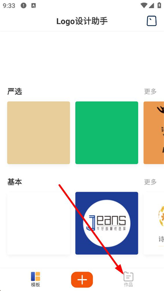 1、點擊設計助手首頁,宣傳VIP會員特權,有立即查看按鈕,下方展示嚴選及基本類logo模板。