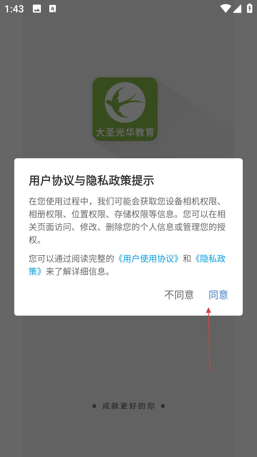1、下載安裝完成后進入,需在用戶協議和隱私政策界面點擊同意,接受相關條款后才能進入應用。